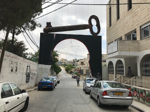 I visited two Palestinian refugee camps within the West Bank after Hebron. On the 14th of June, I entered the Aida camp near Bethlehem. There to greet me was a looming structure high above the main gate, which was, upon further inspection, a massive key. In fact, the gate itself was a keyhole! Proceeding into the camp, I met with Alrowwad, an organization with the mission to “beautifully resist” the occupation through art. I asked the Alrowaad representative about the significance of the key.