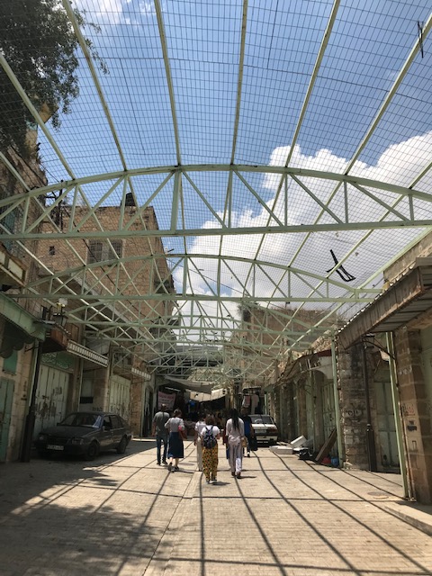 I remember walking through the market of the Old City (having first entered through a checkpoint whereby I had to present my passport and walk through a turnstile-like door) and looking up at the nets covering the roofs above. What are those nets for, I inquired. The nets are to protect the vendors from stones and trash thrown by settlers, I was told.